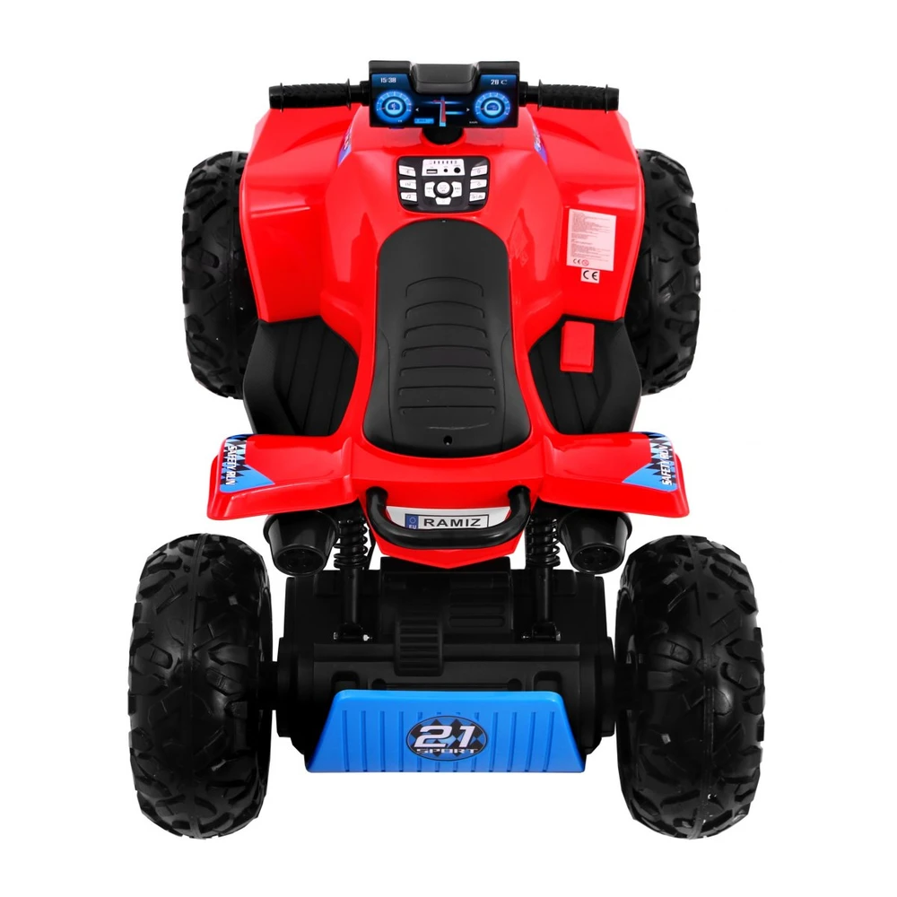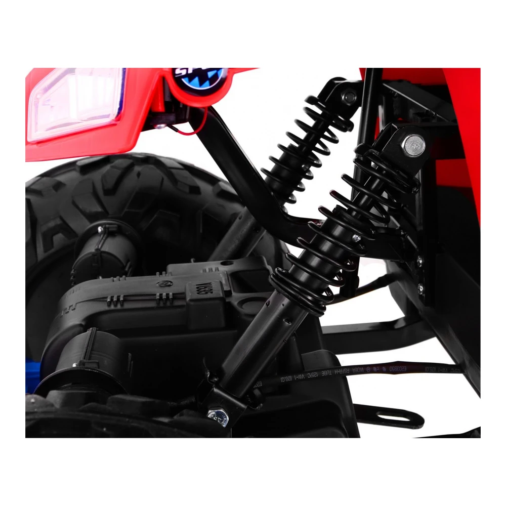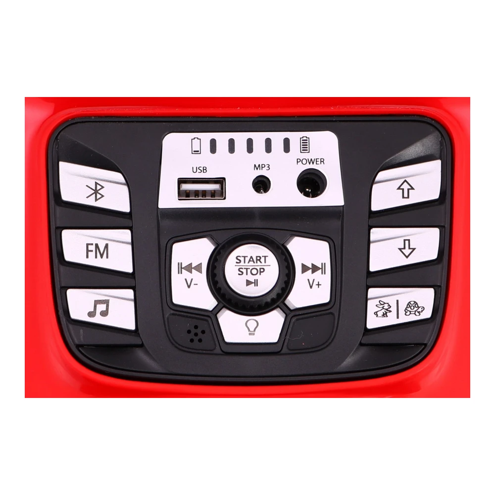 This powerful 12V ride-on car is equipped with four 45W motors, delivering strong performance and smooth handling for young children. EVA foam wheels, front and rear suspension, and a slow-start system ensure a stable and comfortable ride on different surfaces. It includes front lights, preloaded melodies, FM radio, and MP3/AUX/USB connectivity, making each drive fun and engaging. With a spacious seat and a 35 kg capacity, it is suitable for kids aged 3 to 7 years.