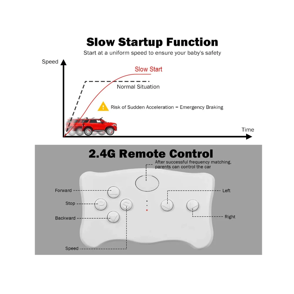 | Control Options | Manual drive or parental remote control for safety supervision. |