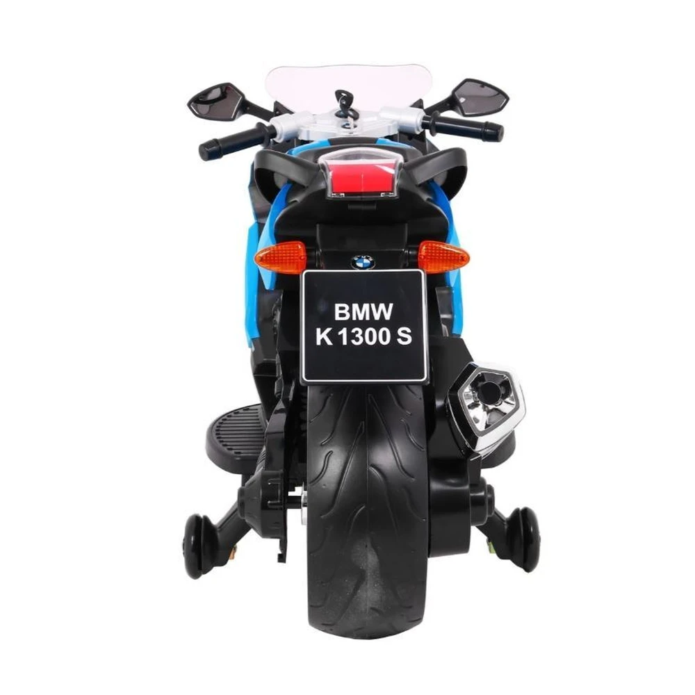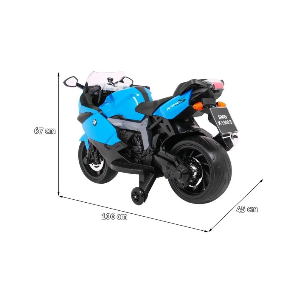 Electric BMW K1300S ride-on bike with a 12V motor, EVA wheels, LED lighting, and three speeds. Features slow start, forward/reverse gears, and a comfortable seat, supporting riders up to 30 kg. Ideal for realistic and safe driving fun.