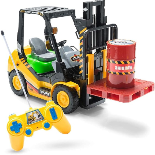 This 2.4 GHz 8-channel Huina RC Fork-Lift Truck delivers true-to-life operation with a durable alloy frame, strong lifting fork, 360° rotation, LED lights, and programmable functions. It even converts into a crane with the included hook, offering realistic construction play for young operators and RC fans.