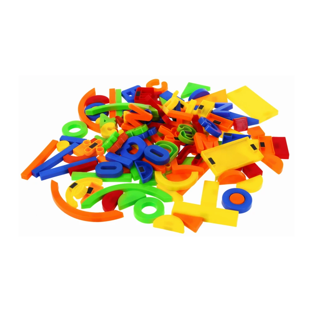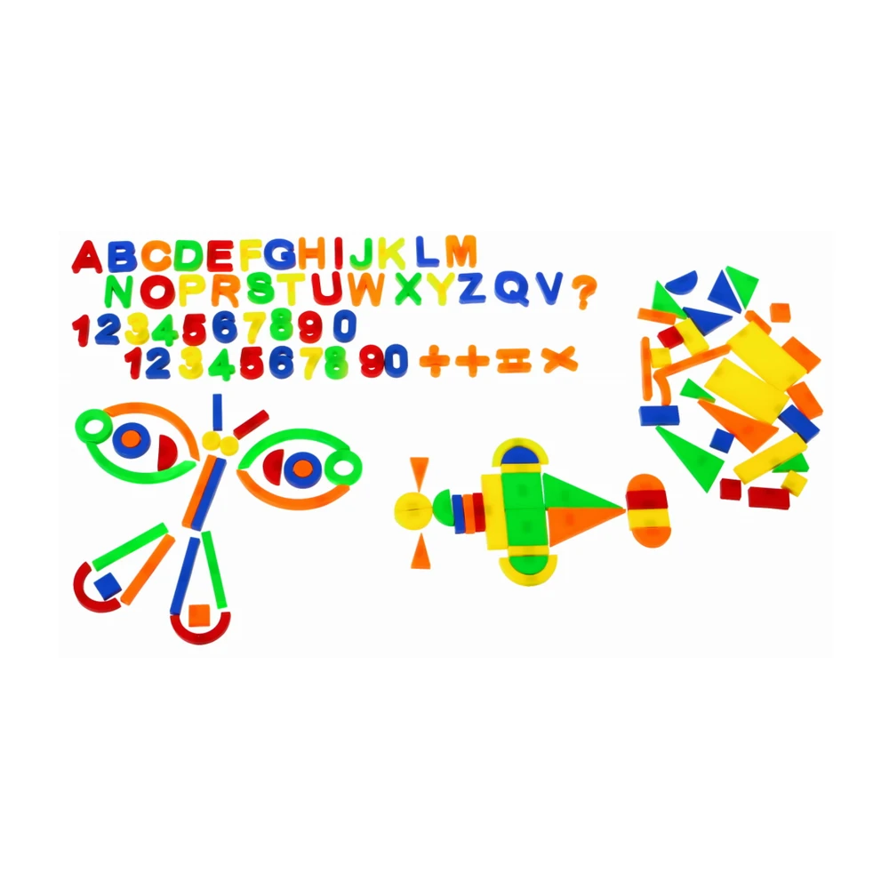 The Numbers and Letters 128 Elements Set is an expansive educational toy designed for children over 3 years of age. Housed in a practical jar with a handle for easy storage, this set features 128 multi-colored pieces including letters, numbers, and geometric figures. It is designed to stimulate development across several levels, helping children learn basic mathematical operations, shape recognition, and color naming through interactive play.