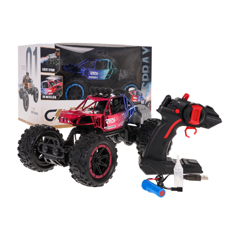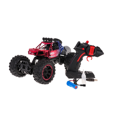 Experience the thrill of off-road adventures with the 1:16 scale R/C crawler in vibrant red! Featuring a smoke function, LED lighting, anti-collision design, high suspension, and 2.4GHz remote control. Perfect for kids 3+ years, with large rubber tires for excellent grip and a rechargeable battery for endless fun!