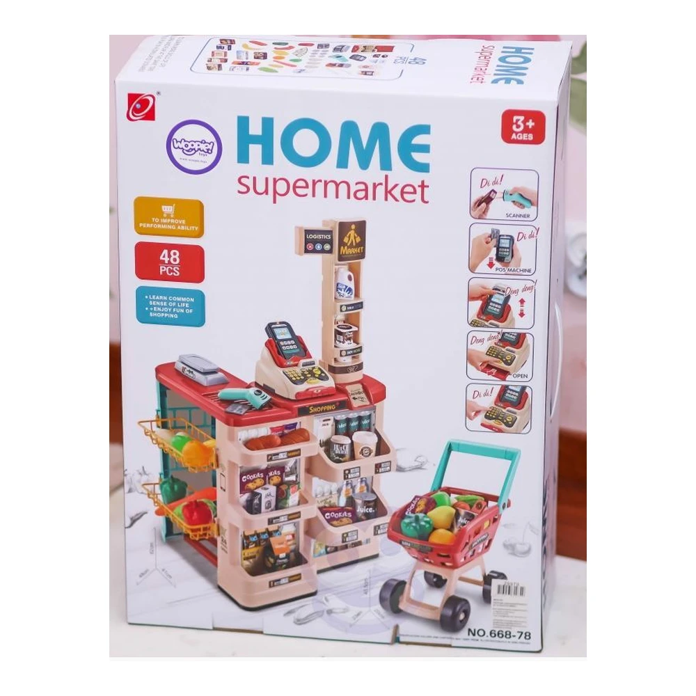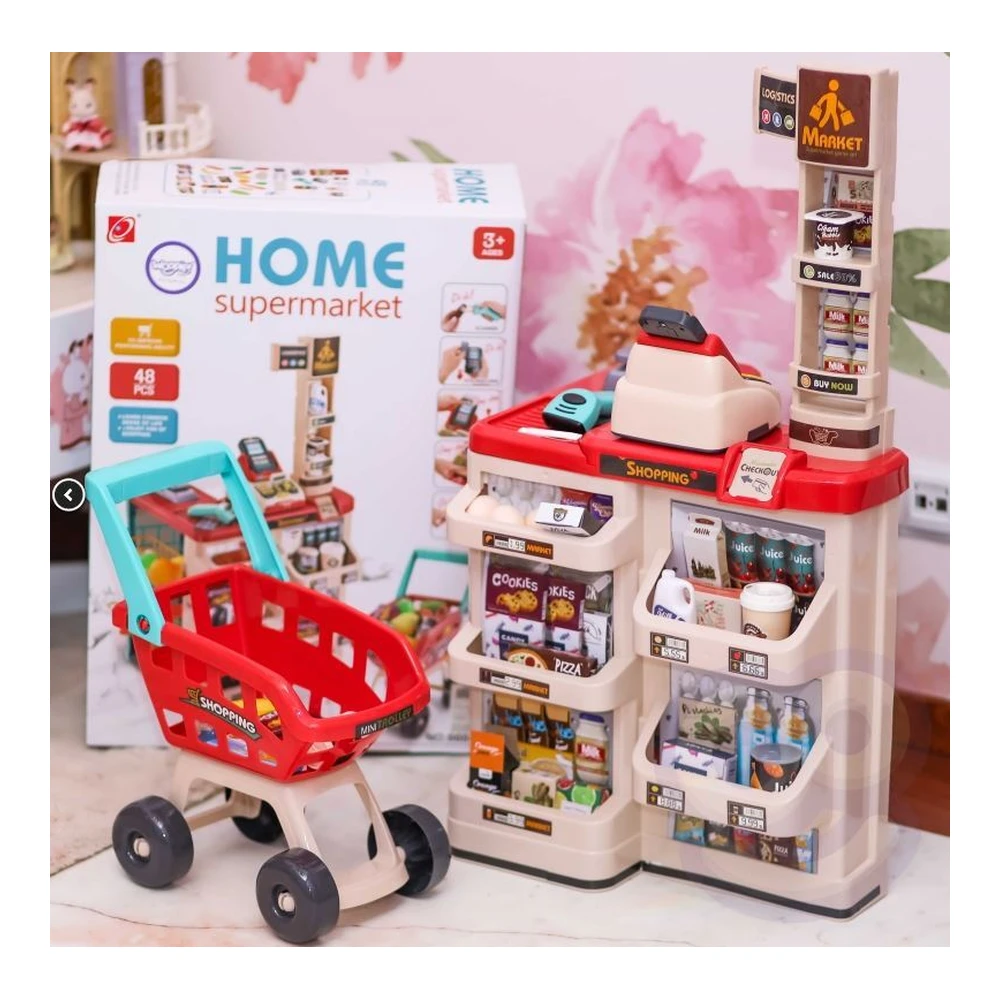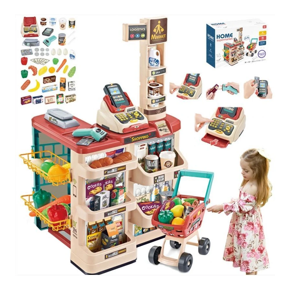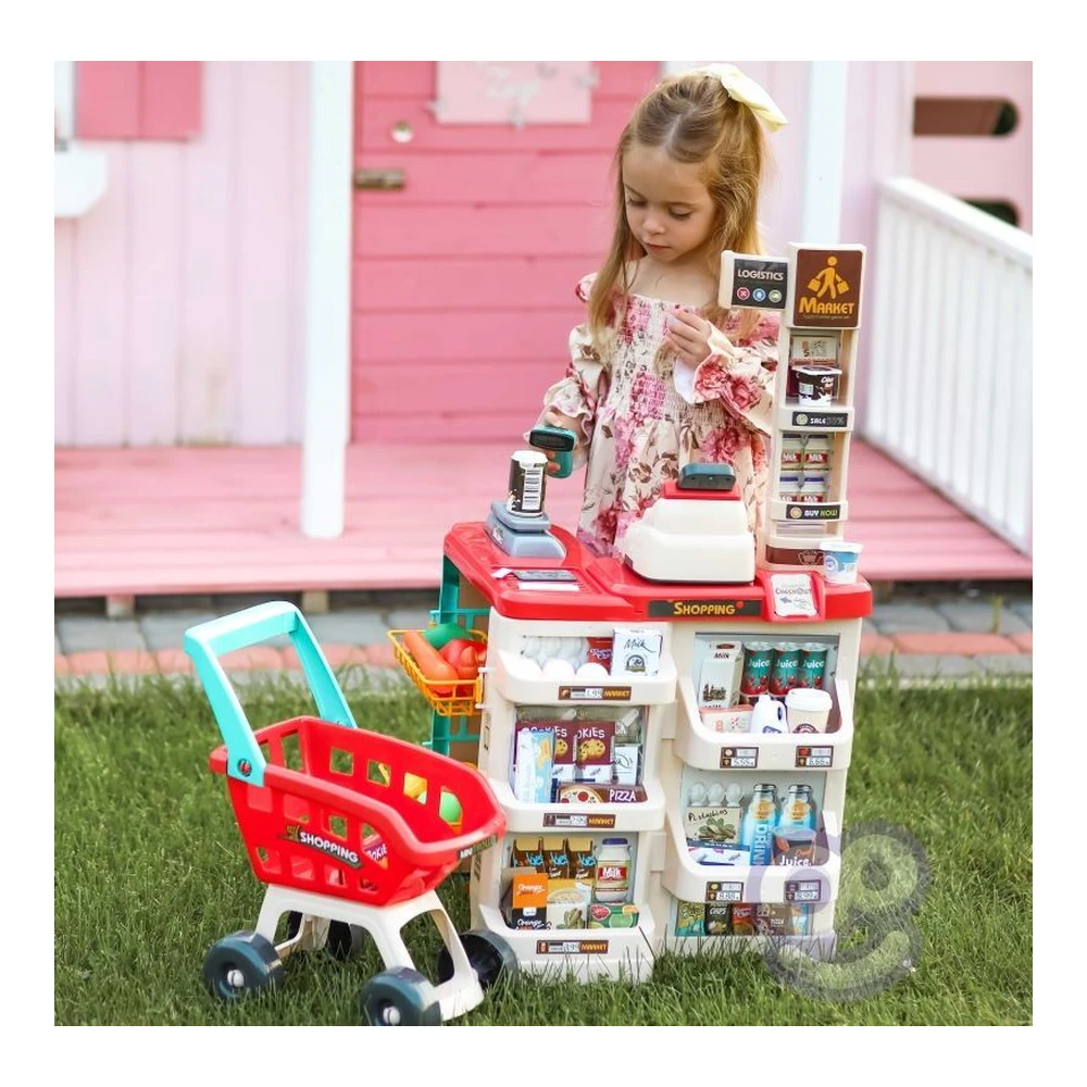 Shop Supermarket with Shopping Cart Scale Cash Register Scanner + 48 Akc