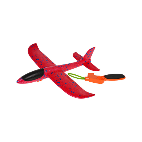 Lightweight styrofoam airplane with manual launcher for kids aged 3+. Durable and aerodynamic, it can fly 20-30 meters when launched with the included slingshot. Perfect for outdoor fun and adventure!
