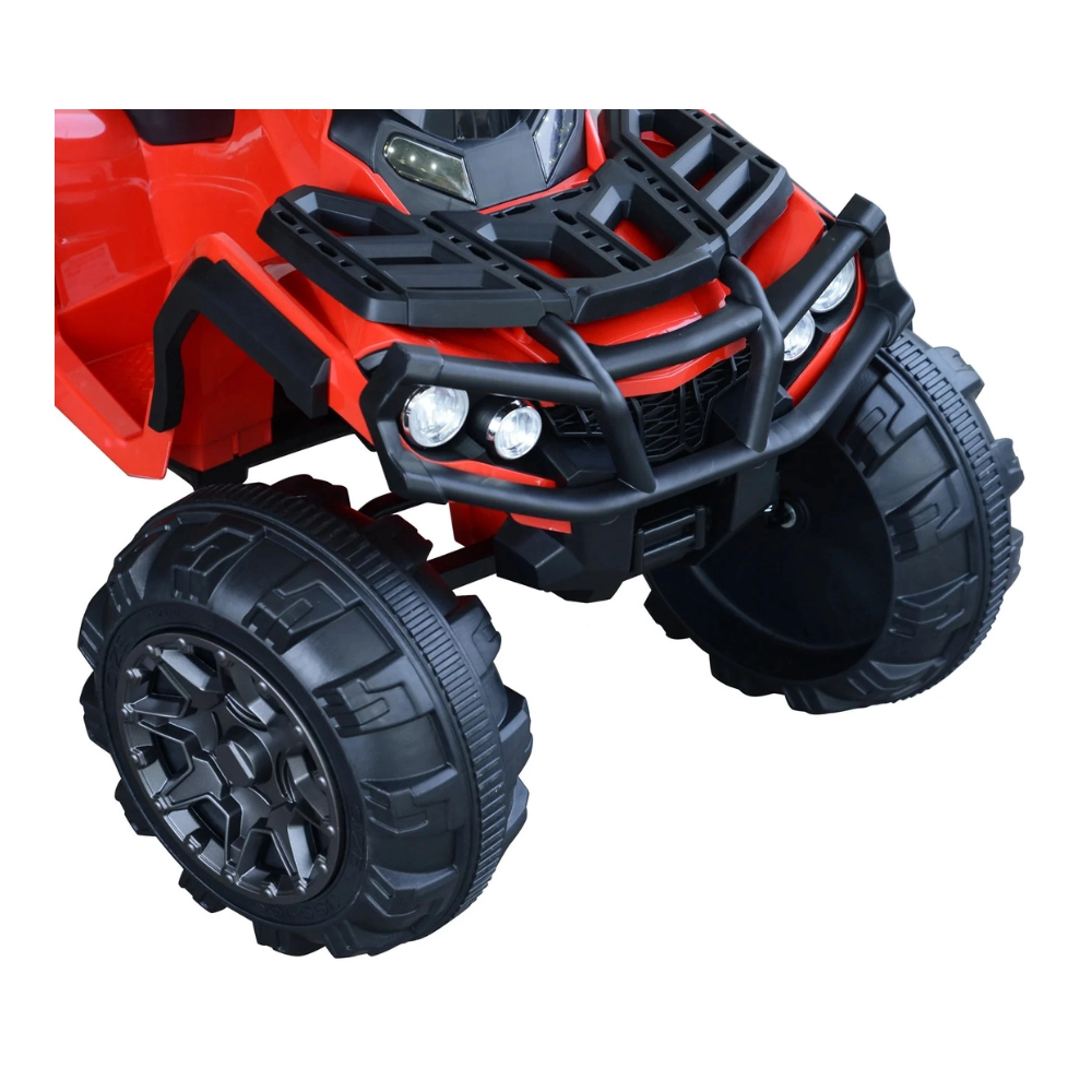 | Model & Design | Sporty 12V Super Quad with rugged four-wheel design and realistic detailing. |