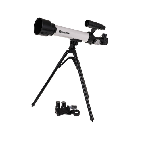 “Explore the stars with the Astronomical Telescope for kids aged 8 and up! This easy-to-use telescope set includes 2 eyepieces with 30x and 60x magnification, a sturdy 39 cm tripod, a phone holder for capturing views, and a compass for navigation.