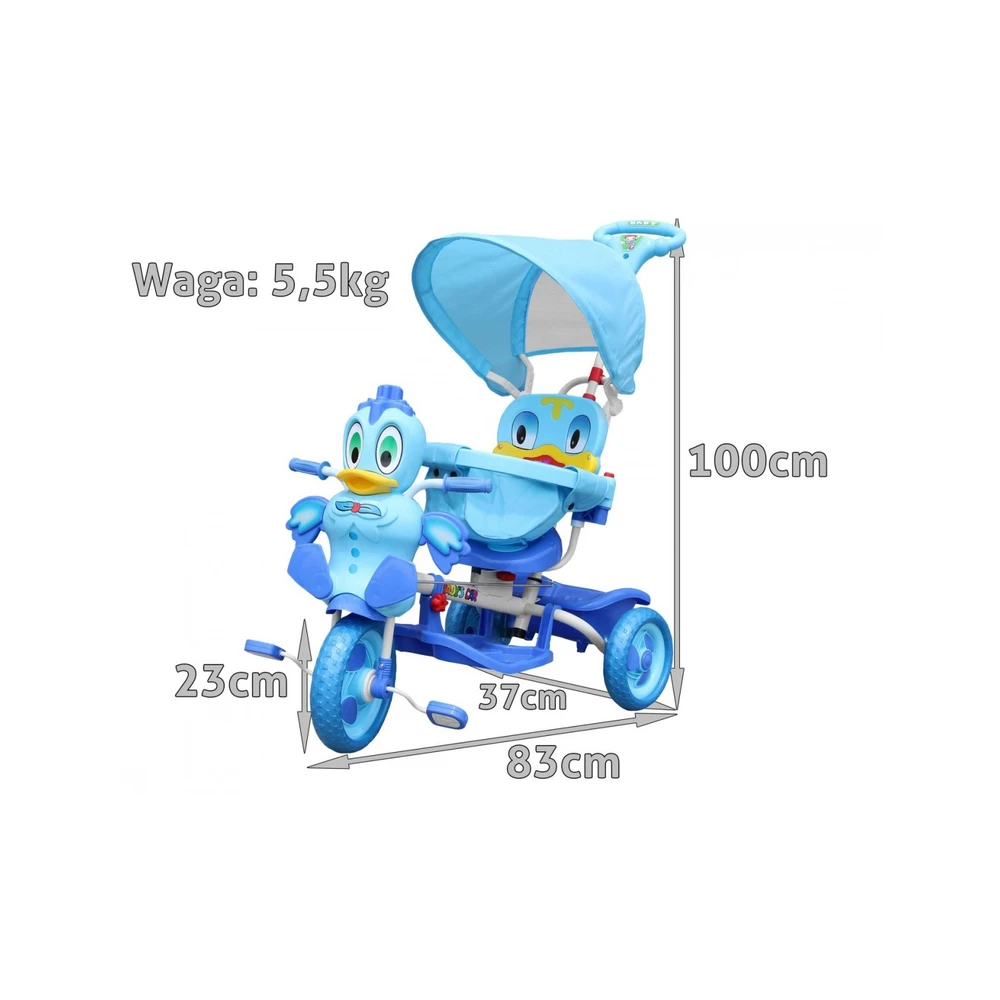 A sturdy 3-in-1 stroller–tricycle designed for kids from 9 months to 4 years. Includes a secure padded seat with safety bar, adjustable push handle, durable hard-rubber wheels, removable canopy and footrest, rear basket, and a fun built-in music feature. Ideal for safe early riding and parent-assisted control