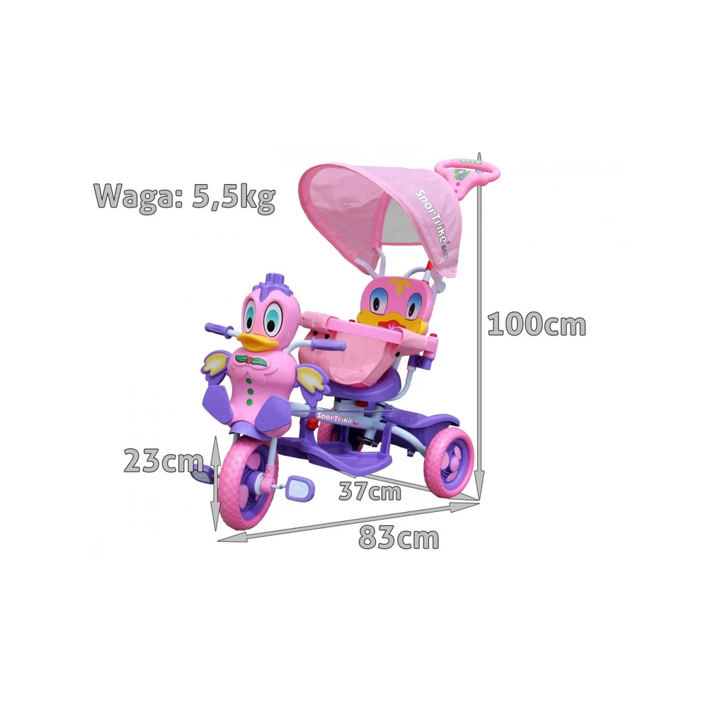 A sturdy 3-in-1 stroller–tricycle designed for kids from 9 months to 4 years. Includes a secure padded seat with safety bar, adjustable push handle, durable hard-rubber wheels, removable canopy and footrest, rear basket, and a fun built-in music feature. Ideal for safe early riding and parent-assisted control