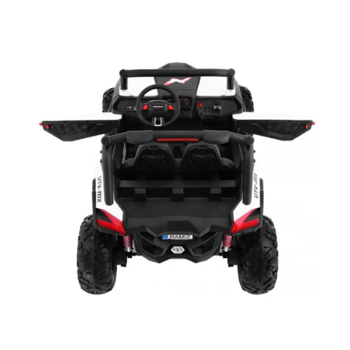 he Buggy SuperStar 4×4 White is a high-performance ride-on vehicle with selectable 2WD/4WD traction, powerful motors, EVA wheels, and reinforced suspension. It provides safe and comfortable driving with LED lights, Bluetooth music features, and a remote control with an emergency STOP button.