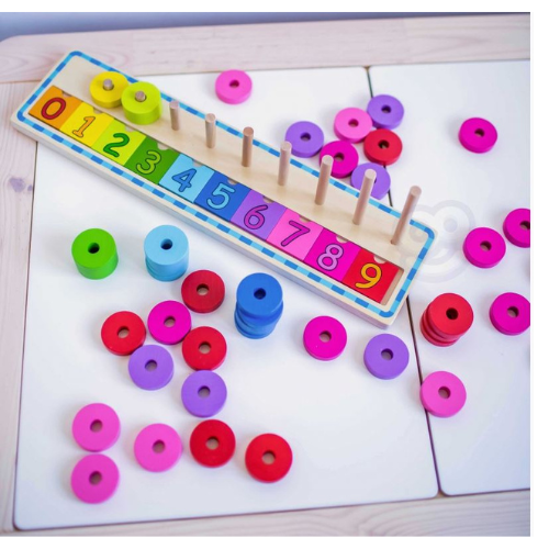 The puzzle from the WOOPIE brand from the GREEN series is a wooden sorter for recognizing colors and learning to count. The fun is to match the number of circles to the numbers painted on the base.