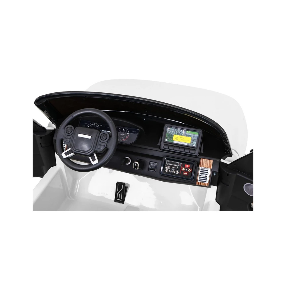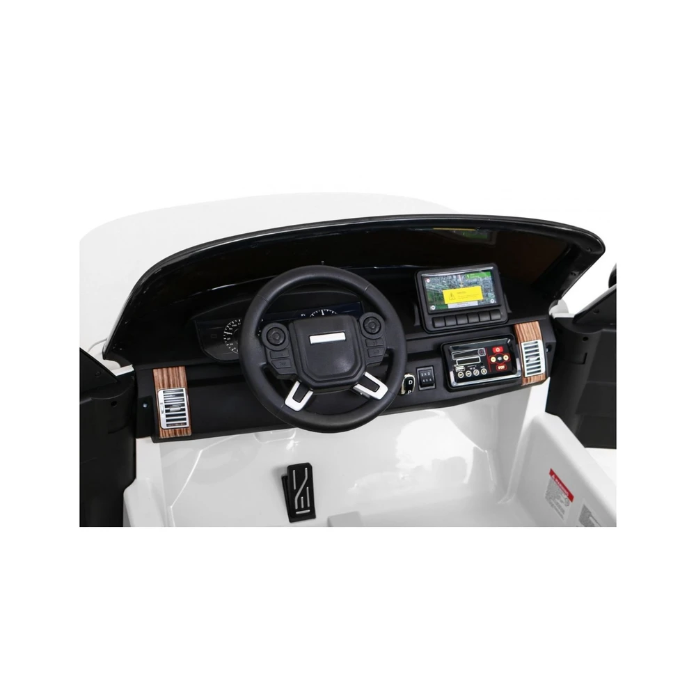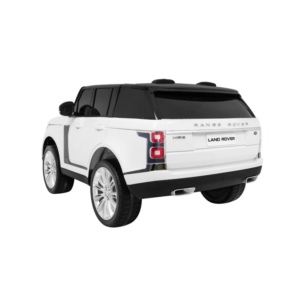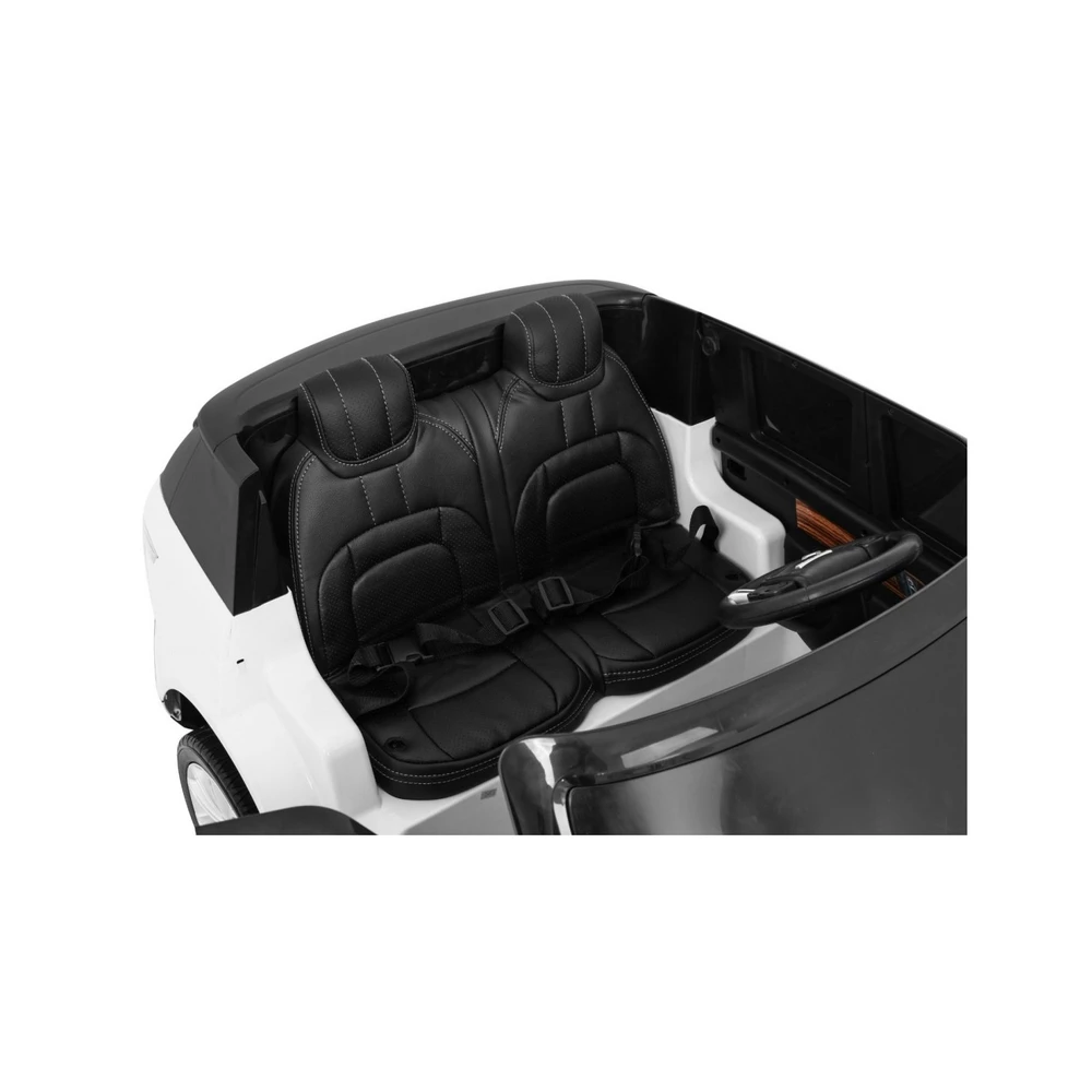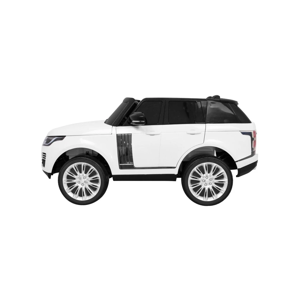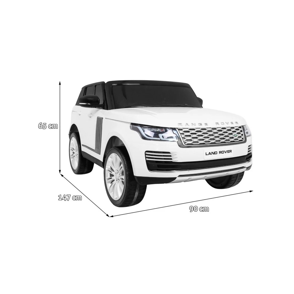 The XXL Range Rover HSE White 2-Seater is a premium ride-on vehicle officially licensed by Range Rover, featuring a spacious dual seat design, leather seats, EVA noise-reduction tires, and spring suspension for a smooth and comfortable ride. It includes a 2.4 GHz parental Bluetooth remote, LED lights, opening doors, hood opening, and a removable dual 12V battery.